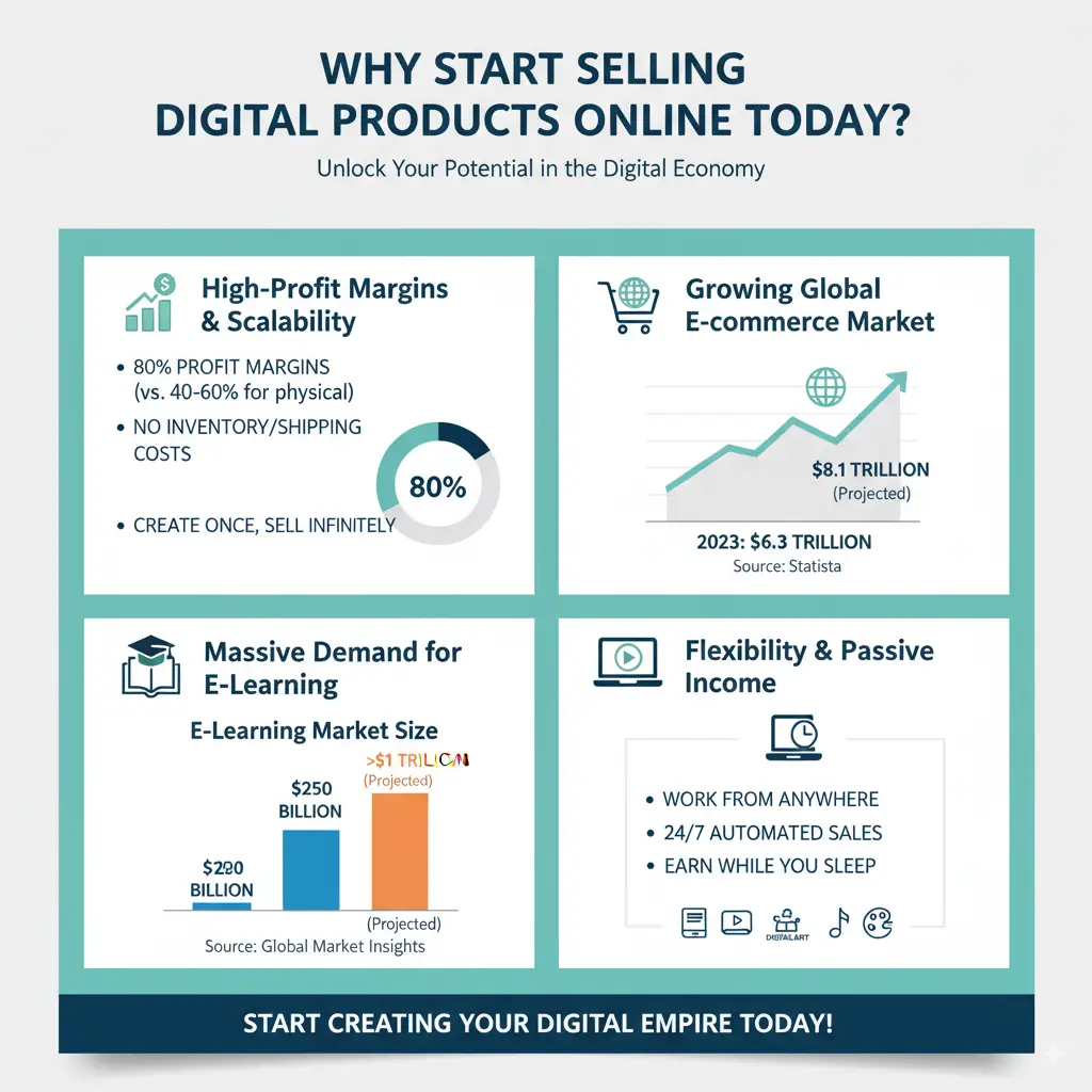 • Evergreen Market – Digital products never expire, and demand keeps growing.